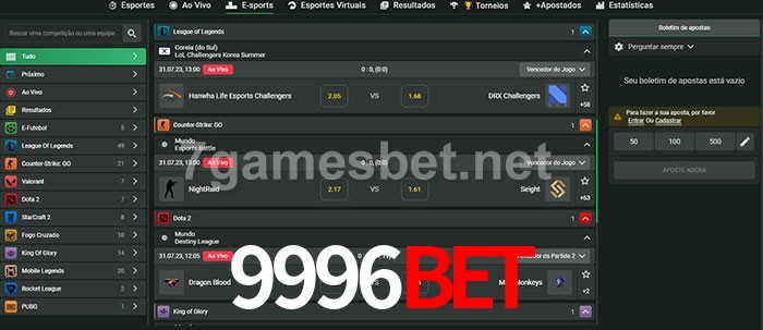 O 9996bet oferece uma grande seleção de opções de apostas em e-sports com probabilidades competitivas